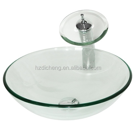 Moderno ronda recipiente transparente de vidrio de baño de lavado cuenca tazón fregadero